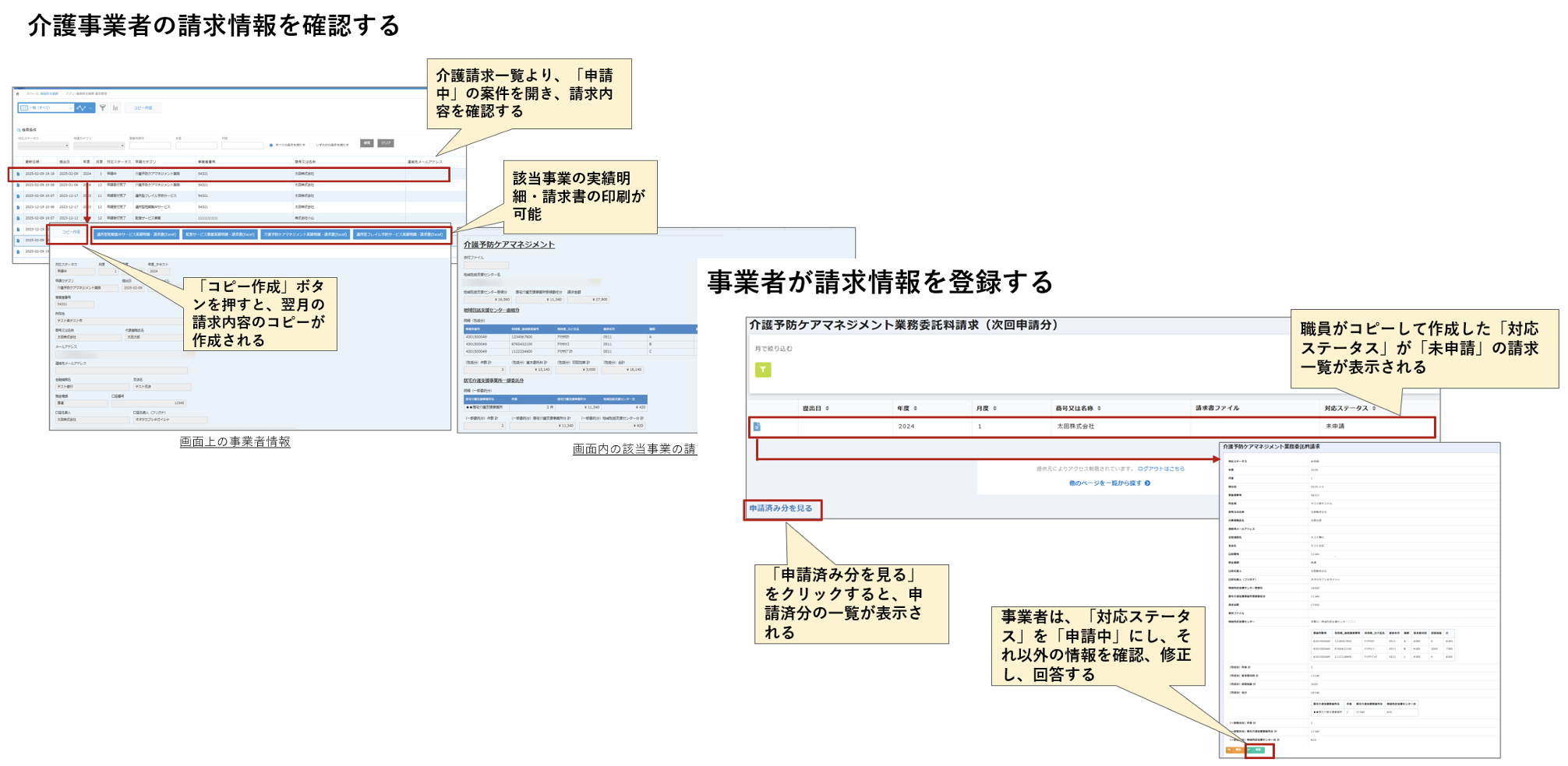 ・オンラインでの請求書提出の実現、および先月の請求書コピー機能による今月の請求書作成の効率化