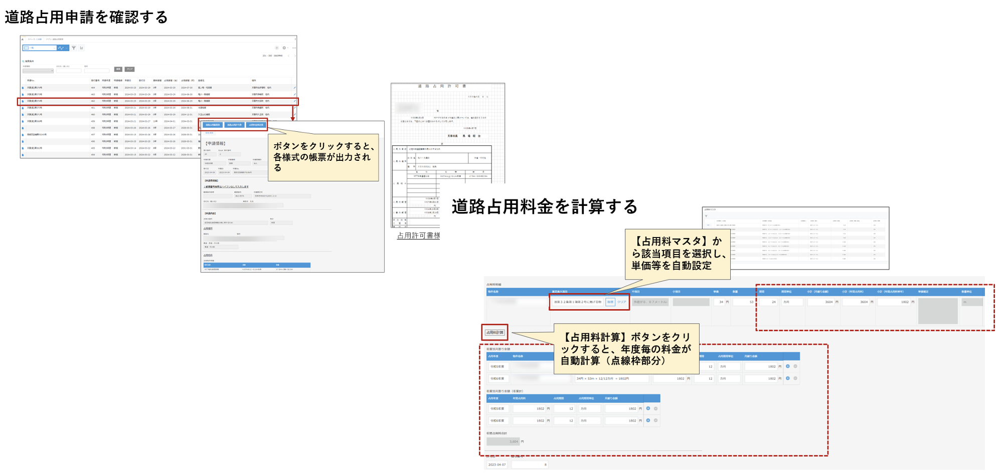 ・道路占用申請時の占用料計算作業と帳票作成作業の削減