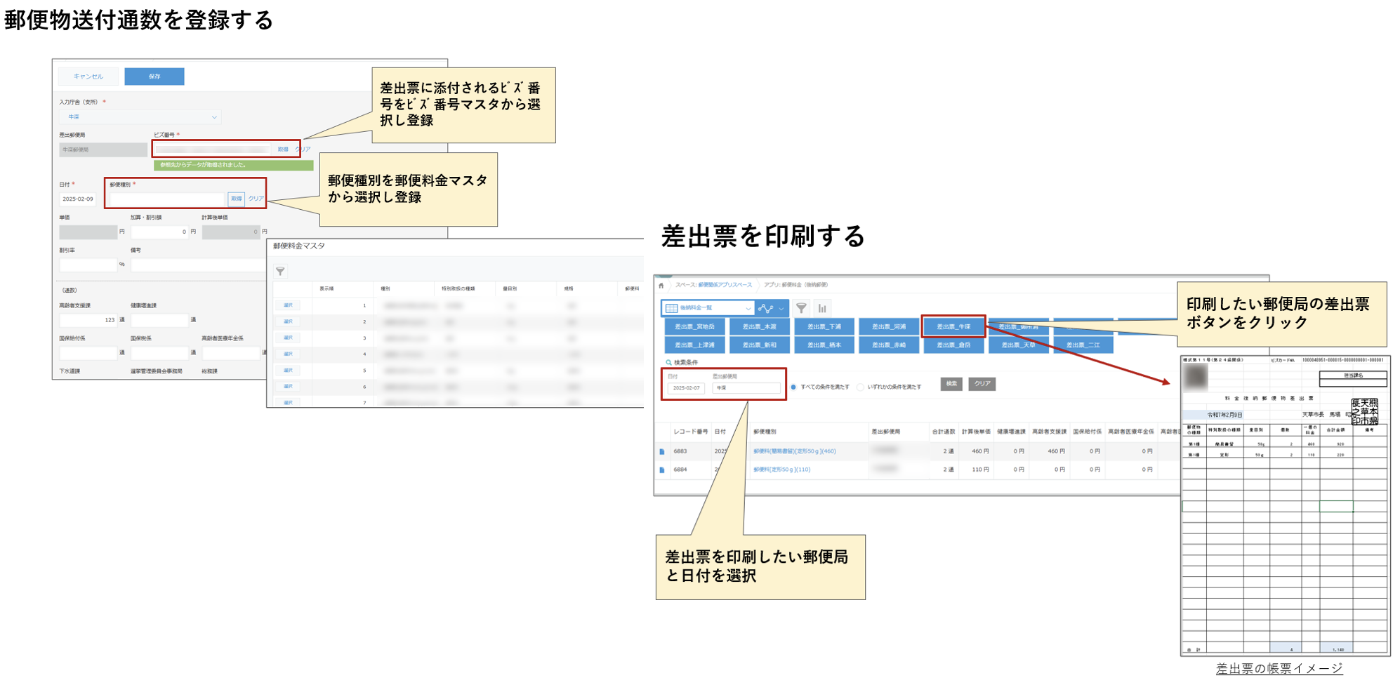 ・郵便物発送に必要な帳票の自動出力機能の実装による、発送や集計業務の効率化